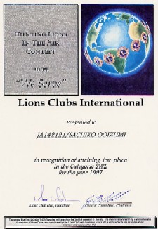 | 高崎ニューセンチュリーライオンズクラブが世界第一位 2002年電波によるライオン狩コンテスト・カテゴリーB(グループ部門) 世界第1位受賞 |