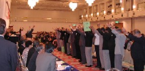 ●閉会挨拶● 第8R2Z・ZC 室岡ライオンの 閉会挨拶のあと、江原会長の ゴングで盛大であり、かつ感銘 を与えた式典の幕が閉じられた。 |