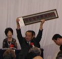 ●記念品の交換● 記念品の交換が行なわれ、国際色 豊かな場面がくり広げられた |