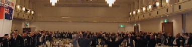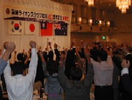 ![]() 乾杯・歓談のあと、副実行委員長三浦ライオン のリードでライオンズロ−ア |