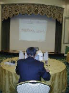 パソコンをプロジェクターに写しての講演