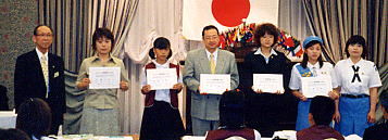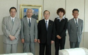 クラブ会長・EXT委員長・松浦市長・新クラブ会長・姉妹提携25周年委員長
